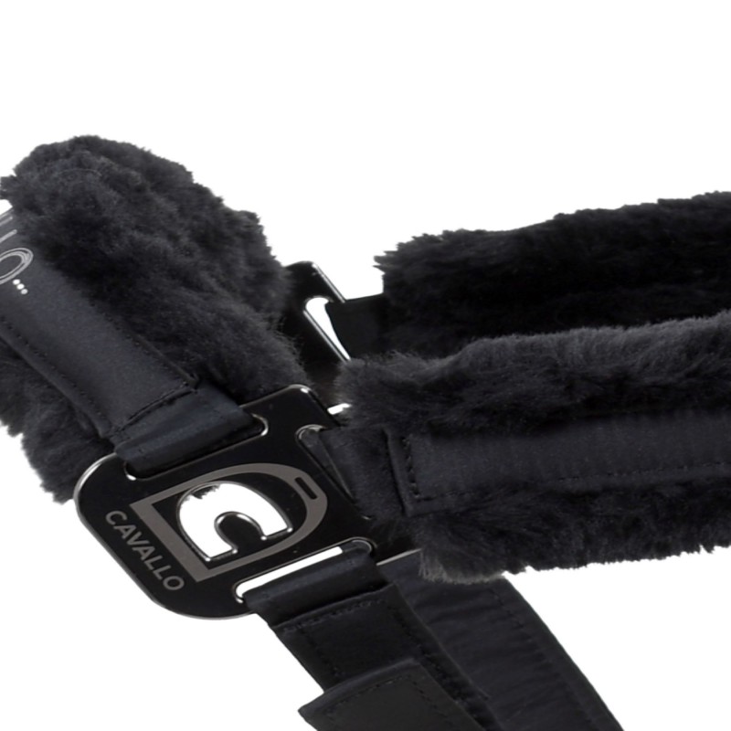 -καπίστρι, μαύρο νάιλον, πλήρως καλυμμένο με απαλή teddy faux γούνα.-ρυθμιζόμενο και στις δύο πλευρέ..