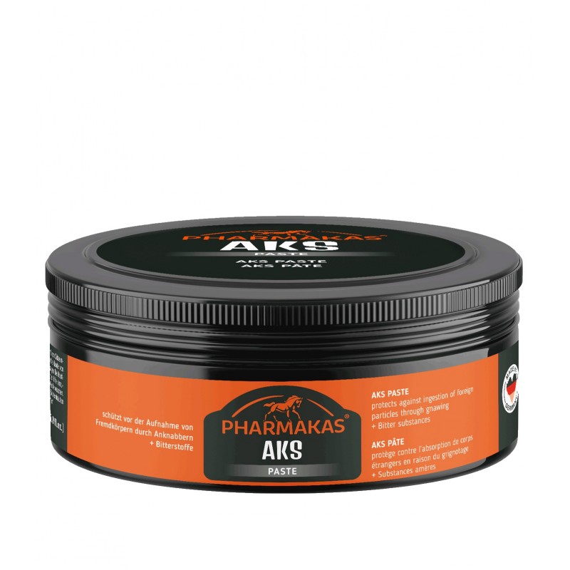 Η πάστα Pharmakas® AKS περιέχει πικρές ουσίες, προστατεύοντας έτσι αποτελεσματικά τα άλογα από την κατάποση ξένων σωμάτων και αποτρέποντας σοβαρούς τραυματισμούς ή ασθένειες (π.χ. κολικούς).