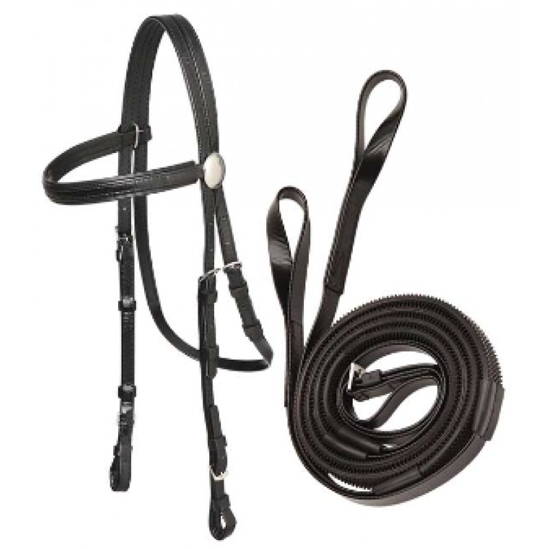 Τα ηνία είναι κατασκευασμένα από πλέγμα πλάτους 16 mm (5/8") με άκρα βρόχου για σύνδεση με τη μύτη.