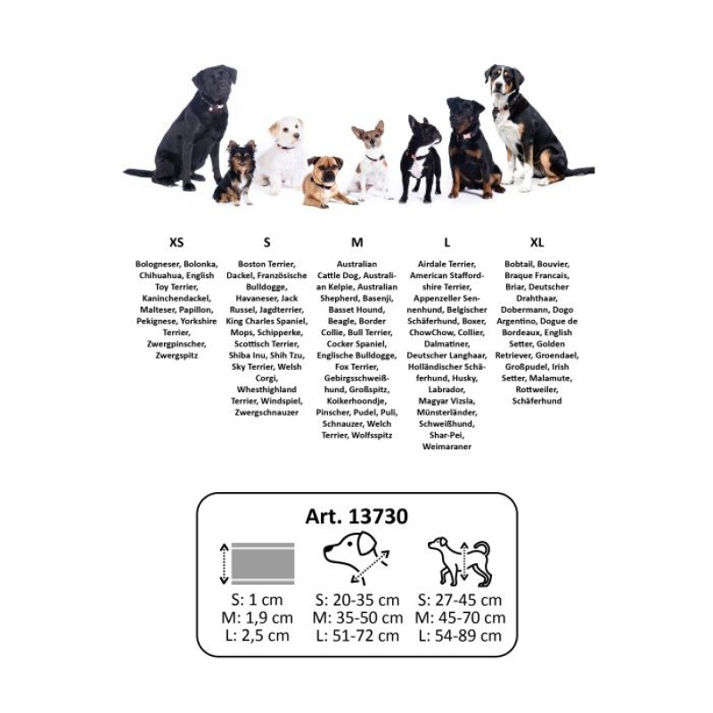 - Το μέγεθος L ταιριάζει σε σκύλους με περιφέρεια λαιμού 51-72 cm