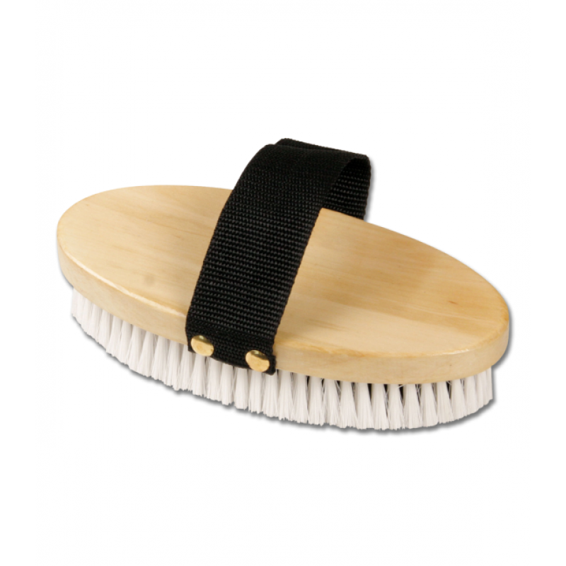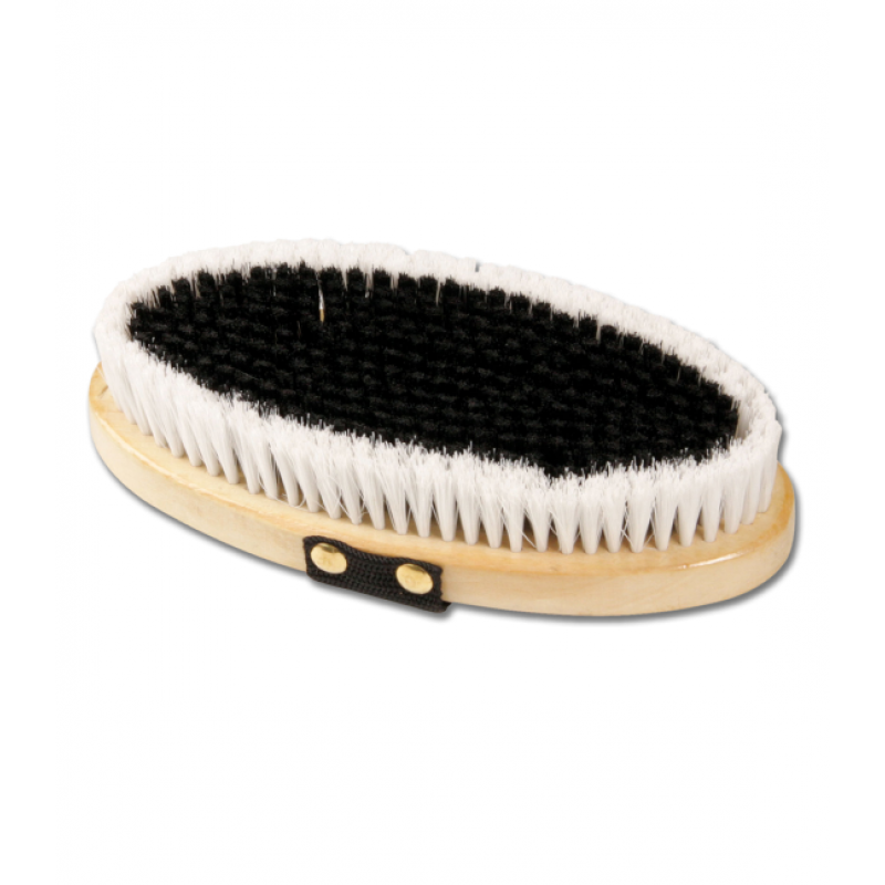 Δυνατές συνθετικές τρίχες μεσαίου πάχους σε ασπρόμαυρη εμφάνιση. πλαισιωμένο από φυσικό ξύλο.