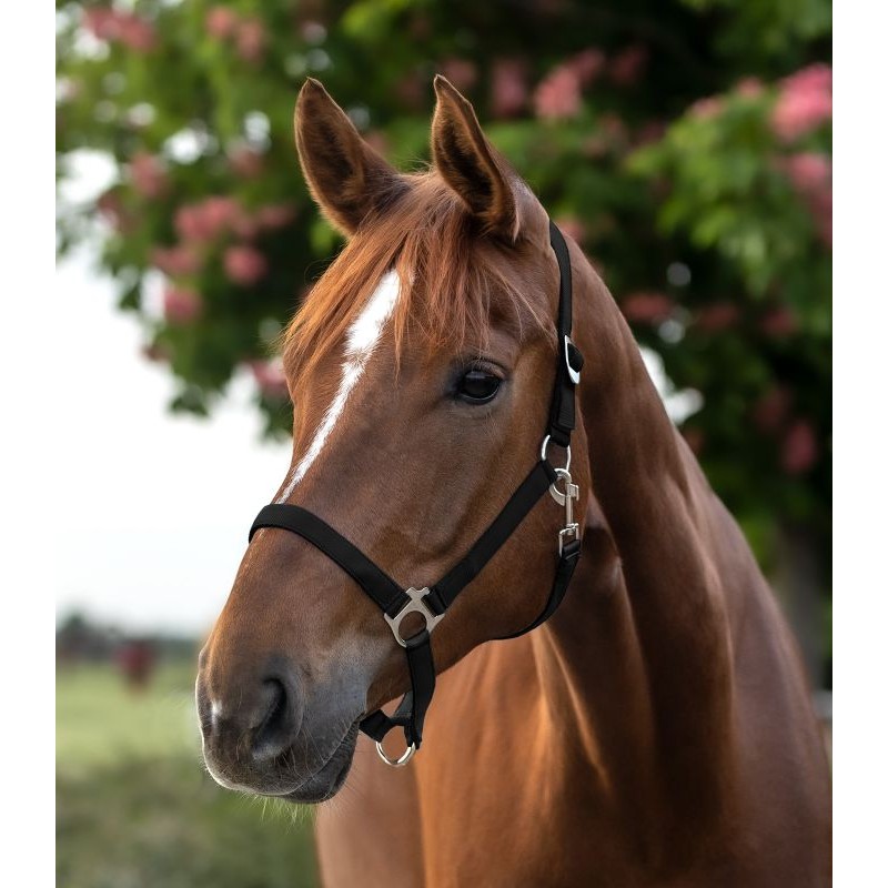 Απλό, μαλακό καπίστρι με γυαλιστερά εξαρτήματα και ρυθμιζόμενο σημείο κεφαλής.